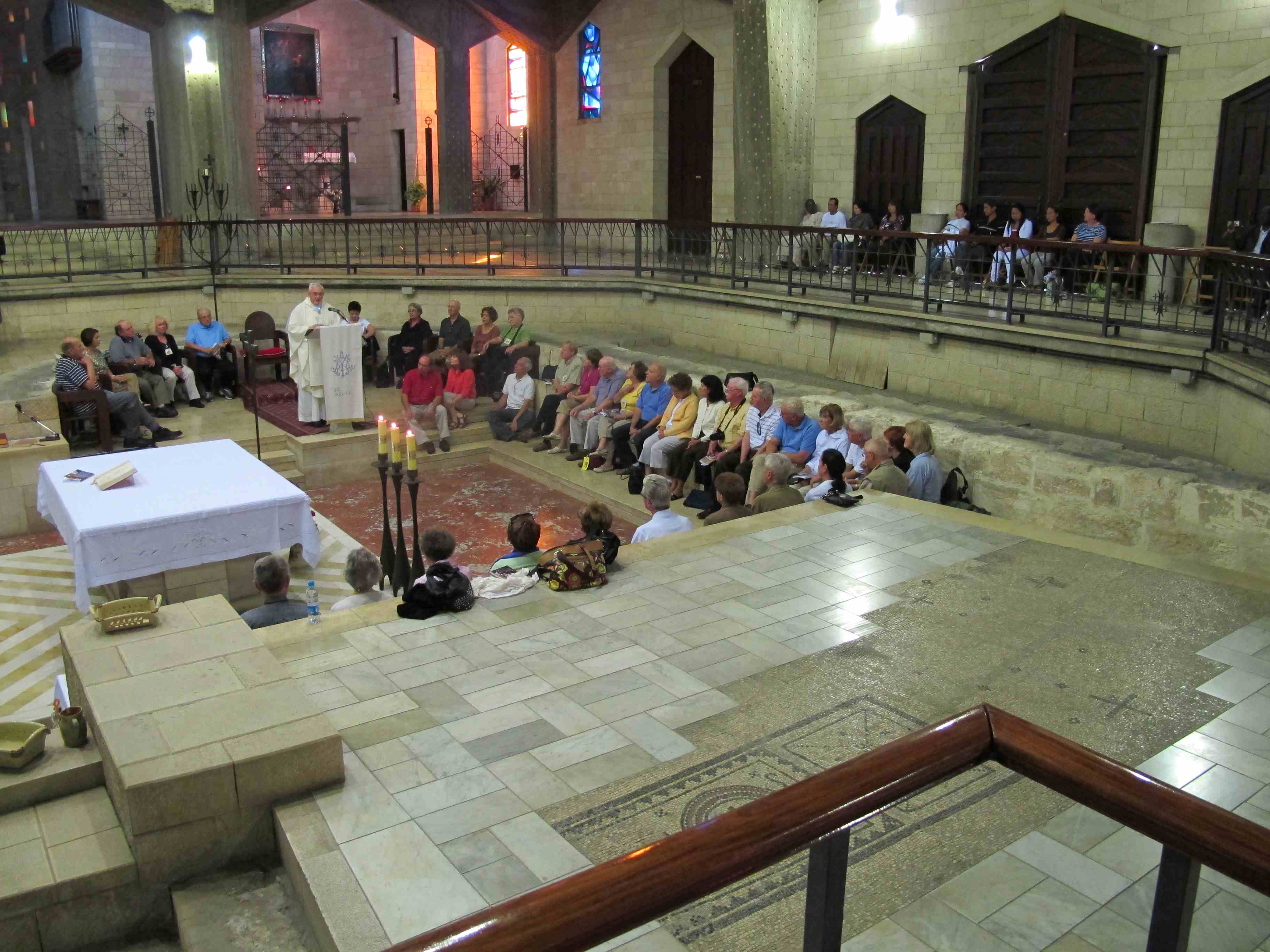 Today we went to Nazareth, very early, but it was worth it. We were among the first at the Basilica of the Annunciation for Mass and could enjoy the quiet of this holy place. Much of old Nazareth, where Jesus was raised, lies under the basilica and some of it is evident at the place where we celebrated Mass.