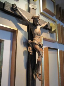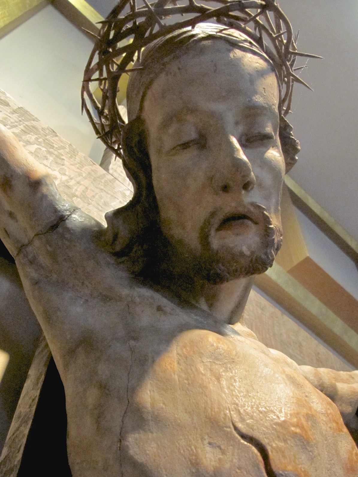 There’s a beautiful crucifix in the chapel where I live now, in Jamaica, New York, a five foot wood carving of Jesus from 15th century Germany.  It bears the wear and tear of the years. Jesus is clearly human, stripped of any sign of his divinity, his head bowed in death. It’s hard to see if he’s white, or black or Asian. He could be any of them. To me he’s the “Son of Man.”