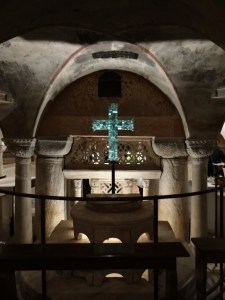 But now the city is largely a museum. Crowds of tourists everywhere. We were fortunate to celebrate Mass in the crypt of St. Mark’s, the great basilica, which began as the private chapel of the Doge of Venice, but was destroyed by fire in 976 AD. The present basilica began to be built from that date.