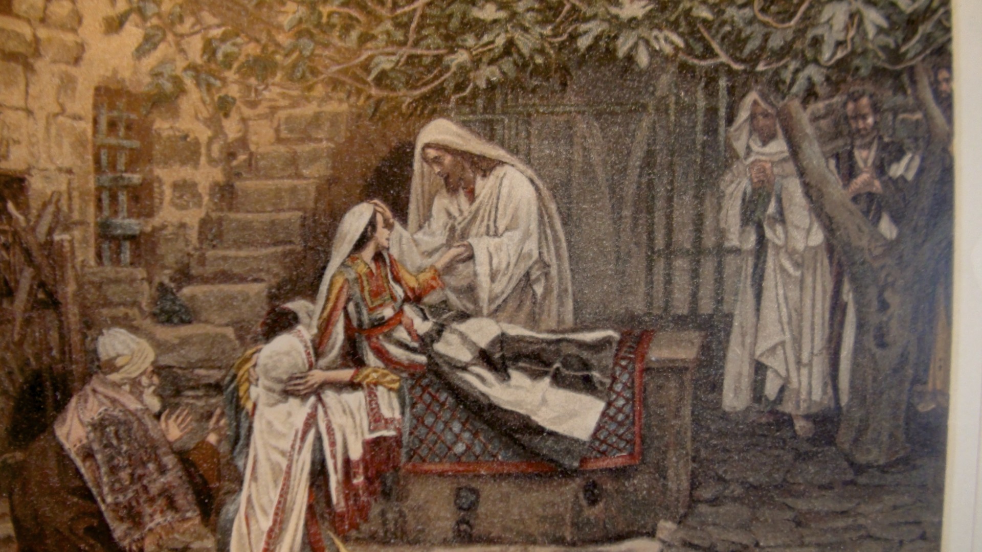 The Gospel of Mark was written in Rome, most scholars say. Is Mark’s arrangement of the  stories of Jesus raising the dead girl to life and the woman touching his garments a way of teaching Roman Christians about the mystery of death? Jesus was with them on their last journey.