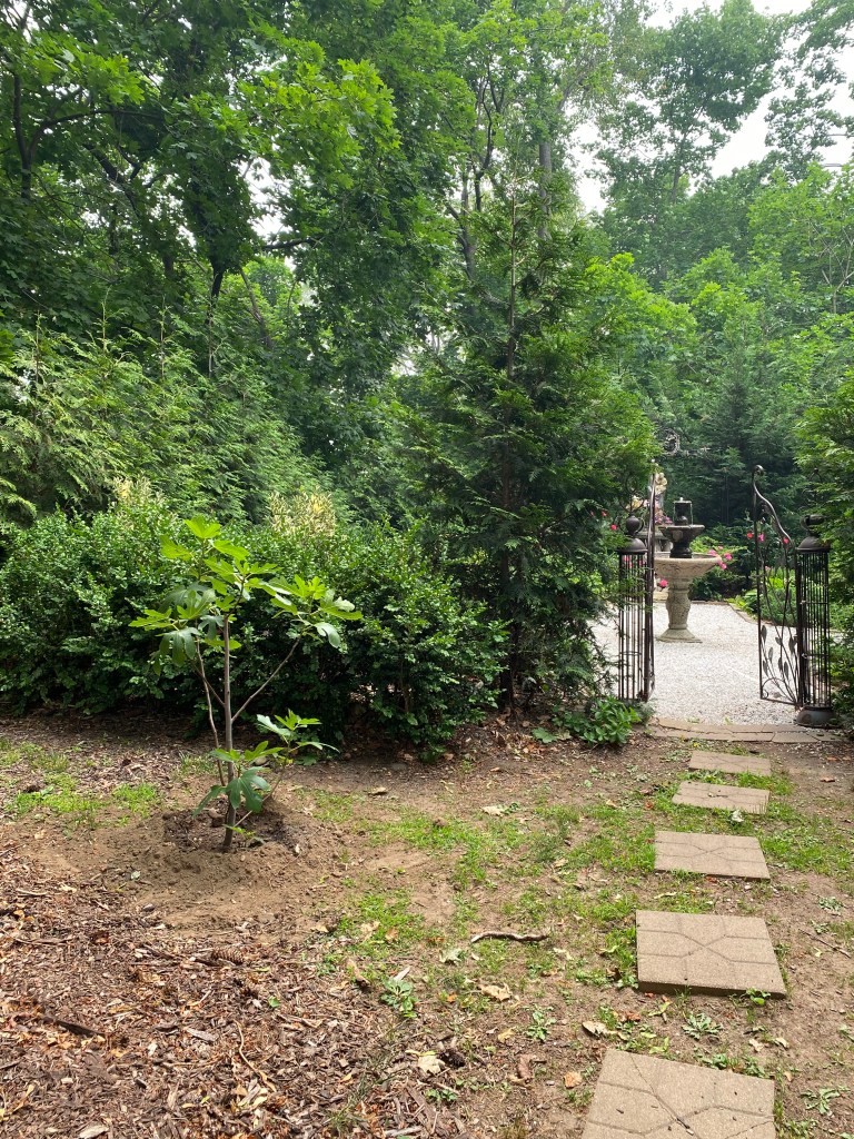 Our neighbor Manuel came over yesterday with the gift of a fig tree, which he planted near the entrance to our Mary Garden. A fig tree belongs there. It’s the first tree named in the garden of Eden (Genesis 3: 7 ), and the last tree mentioned in the Book of Revelations (6: 13). No tree is mentioned more in the Bible.