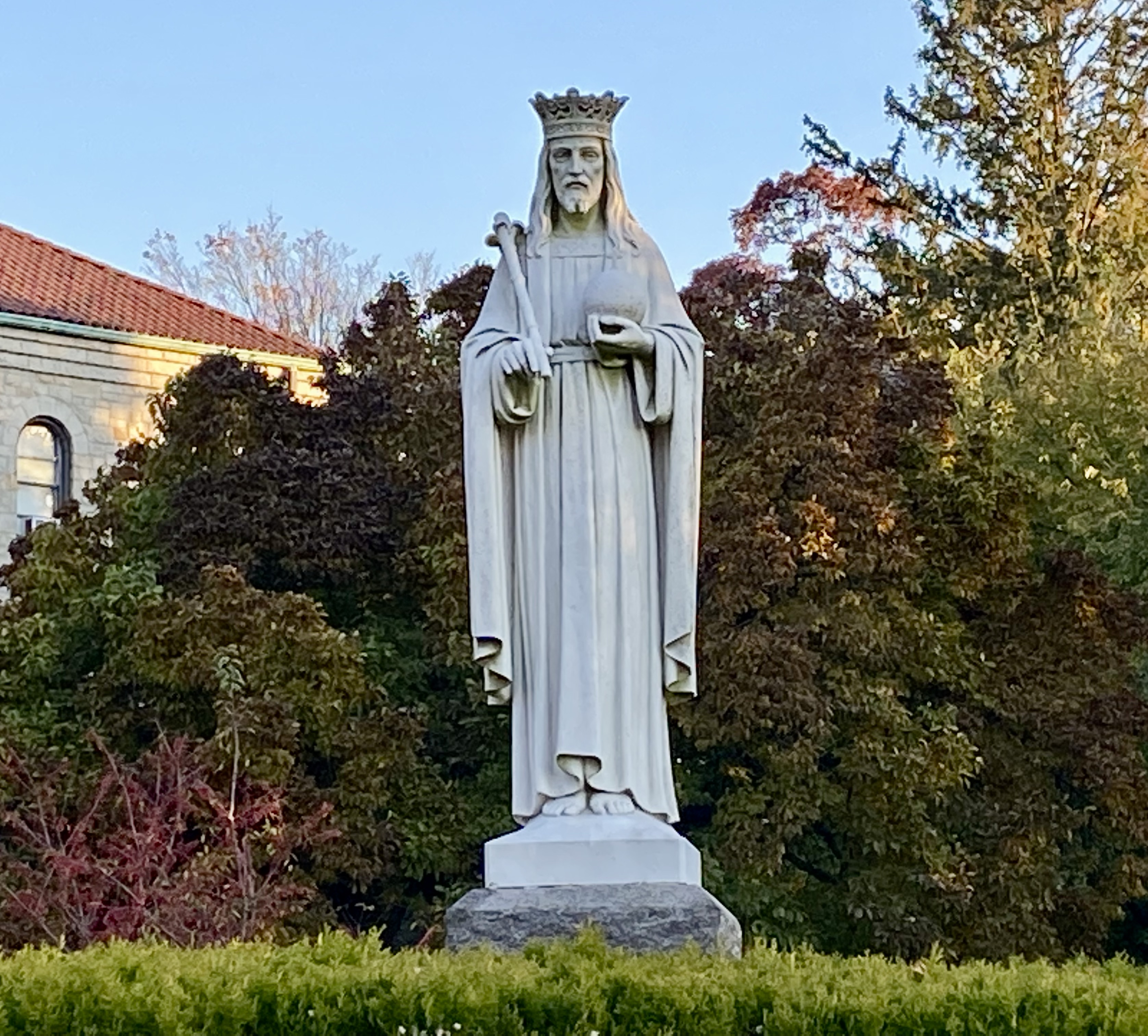 We have this majestic statue of Christ the King in our garden. Don’t forget, too, as the gospels for the Feast of Christ the King remind us, Jesus was king, priest and prophet on Calvary. He holds the world in his hands.