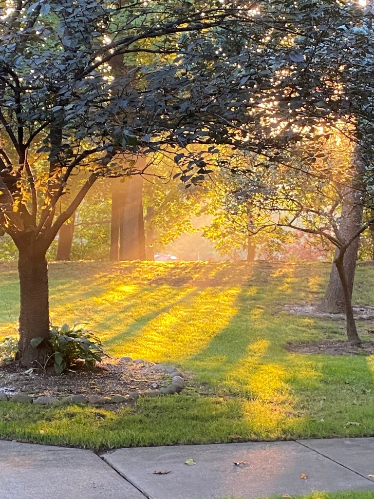 Sunrise through the trees in our garden the other day whispered that to me.