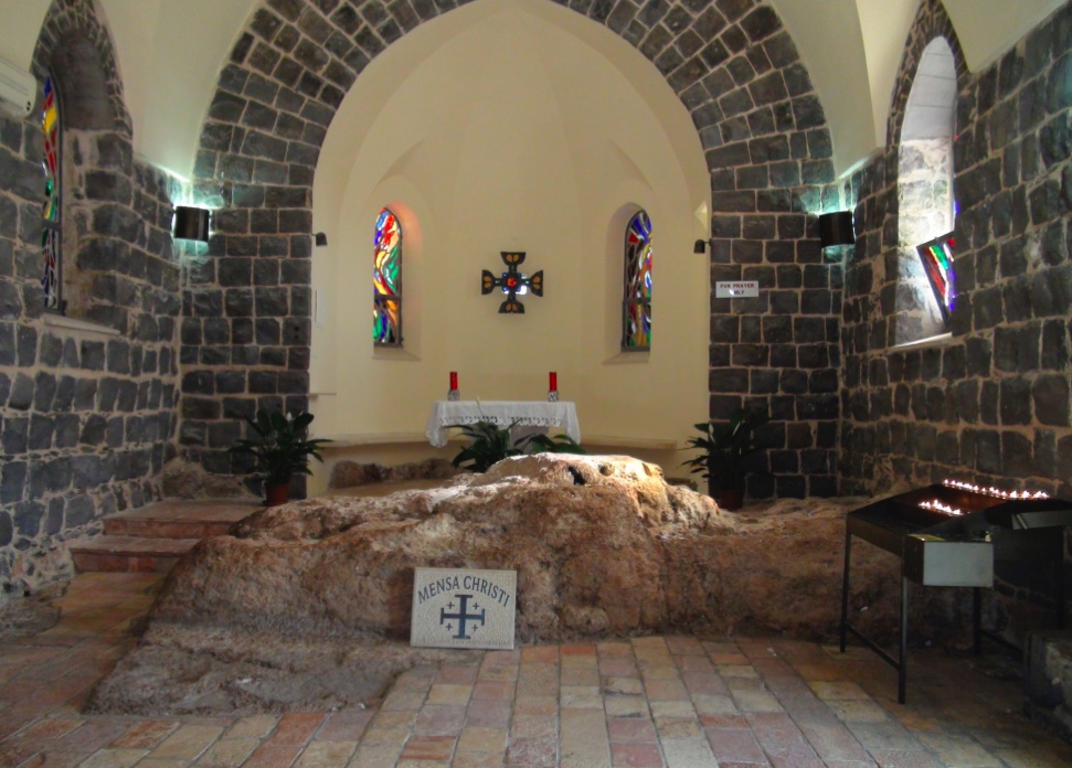 Fishermen would surely draw into Tabgha after a night’s fishing for fresh water from the springs and maybe fry some fish over a fire on the beach. It’s a likely place where Jesus would meet with his disciples. Two ancient churches are on the site. He met his disciples here after his resurrection, tradition says.