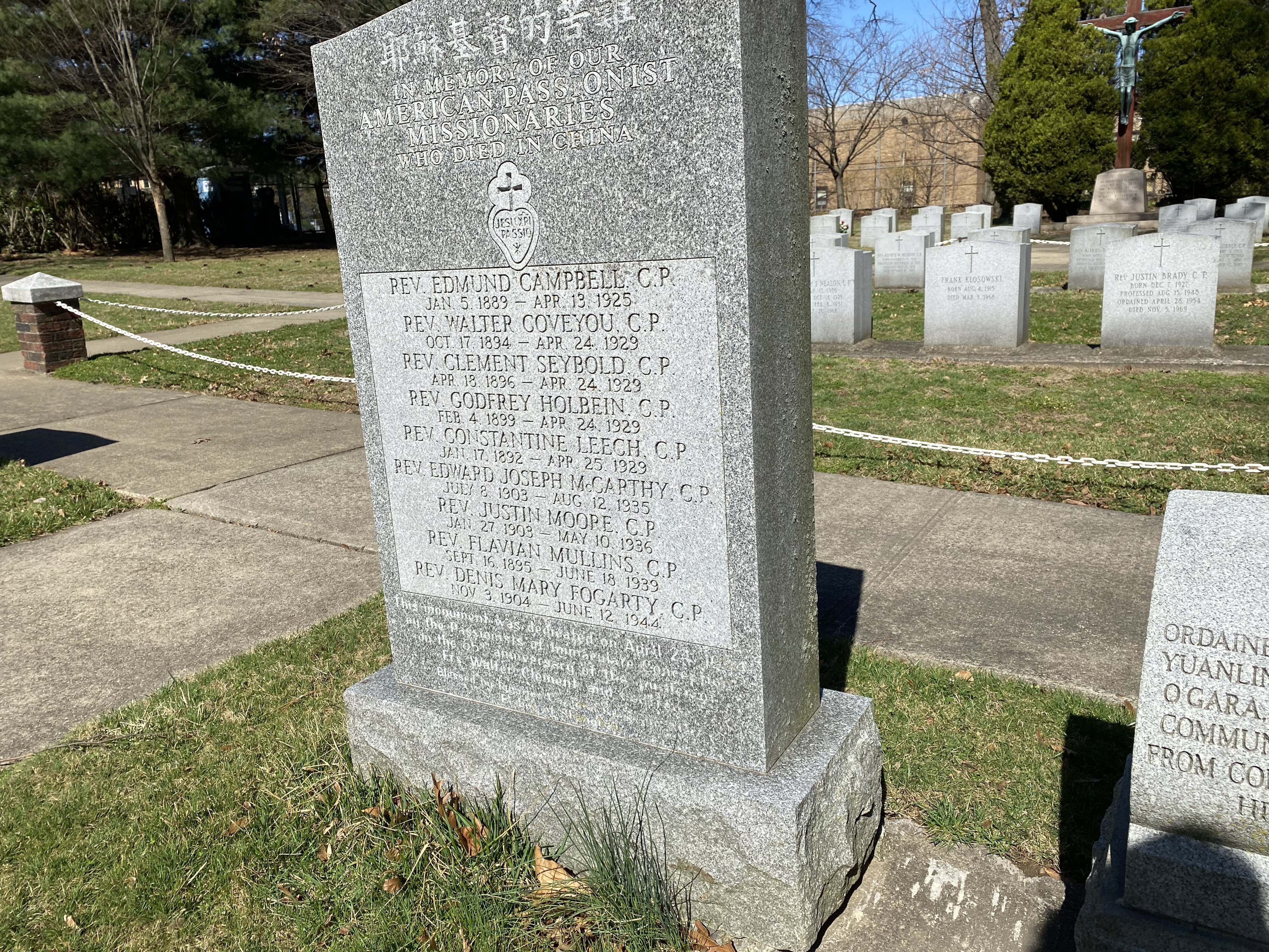 In our cemetery here in Jamaica, New York, we have a monument to a young Chinese priest, Fr. John Nien, who died in the Communist persecution of the church in the 1950s and graves of Passionist missionaries who served in Hunan China during that time. I put Fr. Nien’s monument at the beginning of this entry because he belongs among the martyrs of China. I put the graves and monuments to the Passionist missionaries below because they worked for a harvest that is now here and still to come.