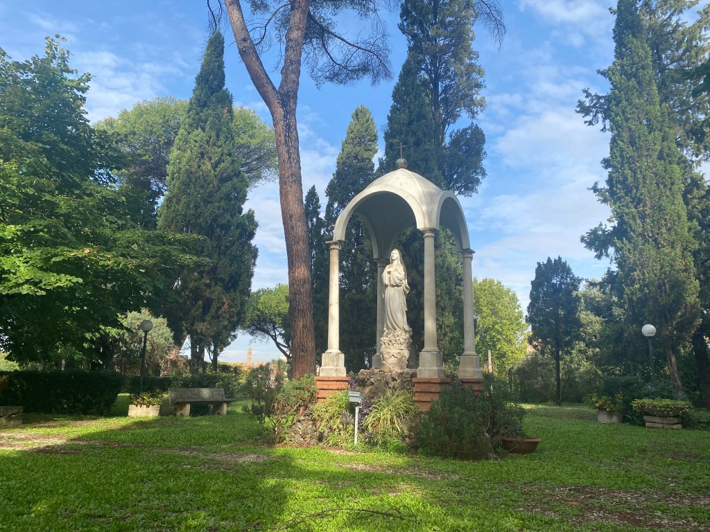 Just below here from the edge of the garden, you can see long lines of tourists on guided tours wending their way through the Colosseum. I wish they could find some of the wisdom found in this small quiet place, a wisdom Mary found and offers to us.