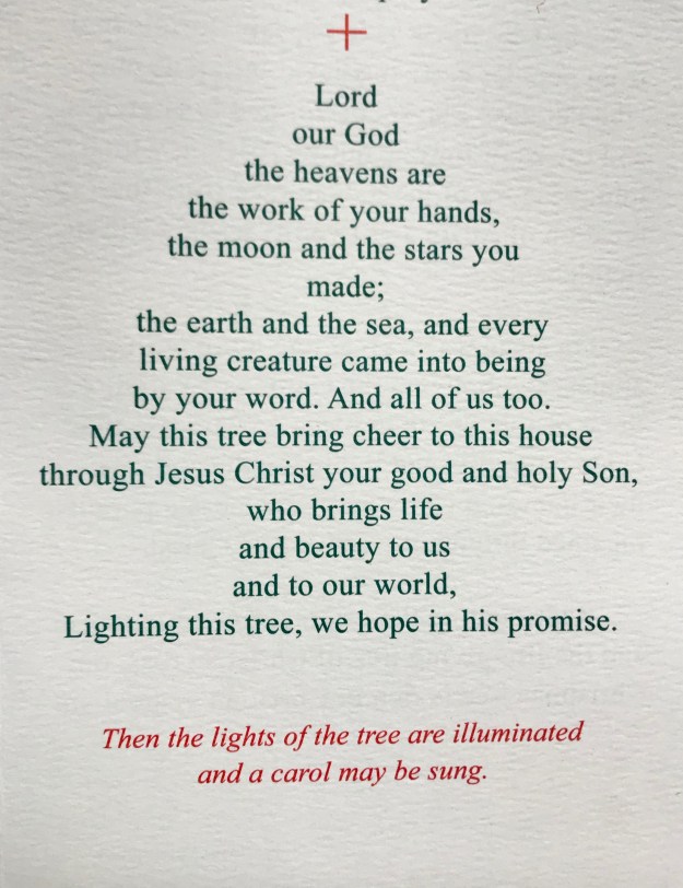 Bless the tree in your house for the season. Here’s a blessing prayer.