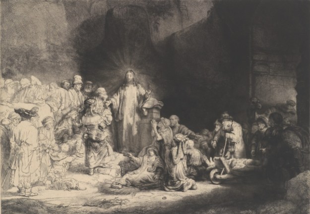 Rembrandt does that in his Hundred Guilder Print, a reflection on the 19th Chapter of Matthew’s Gospel. It’s an inspiring portrait of Jesus calling poor humanity to himself. He is our Savior.