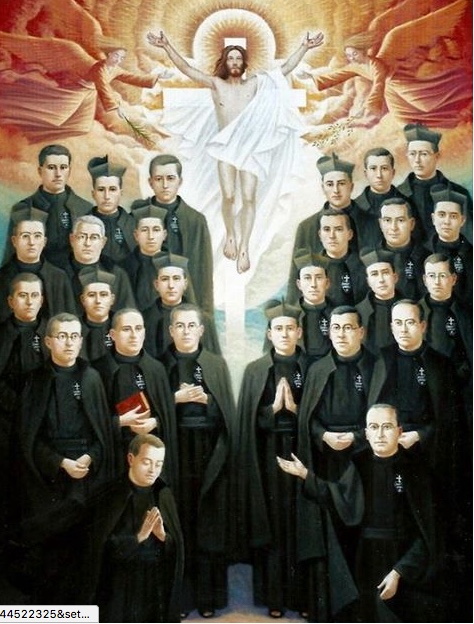 Between July 22nd and October 24th, 1936, twenty-six religious from the Passionist house of studies, Christ of the Light, outside the city of Daimiel, about eighty miles south of Madrid, died at the hands of anti-religious militiamen at the outbreak of the Spanish Civil War. They were: Niceforo Diez Tejerina, 43, provincial superior, who previously served as a missionary in Mexico and Cuba after being ordained in Chicago, Illinois.; Ildefonso García Nozal, 38; Pedro Largo Redondo, 29; Justiniano Cuestra Redondo, 26; Eufrasio de Celis Santos, 21; Maurilio Macho Rodríguez, 21; Jose EstalayoGarcia, 21; Julio Mediavilla Concejero, 21; Fulgencio Calv Sánchez, 19; Honorino Carraced Ramos, 19; Laurino Proáno Cuestra, 20; Epifanio Sierra Conde, 20; Abilio Ramos Ramos, 19; Anacario Benito Nozal, 30; Felipe Ruiz Fraile, 21; Jose Osés Sainz, 21; Felix Ugalde Irurzun, 21; Jose Maria Ruiz Martinez, 20; Zacarias Fernández Crespo, 19; Pablo Maria Lopez Portillo, 54; Benito Solano Ruiz, 38; Tomas Cuartero Gascón, 21; Jose Maria Cuartero Gascón, 18; German Perez Jiménez, 38; Juan Pedro Bengoa Aranguren, 46; Felipe Valcobado Granado, 62.