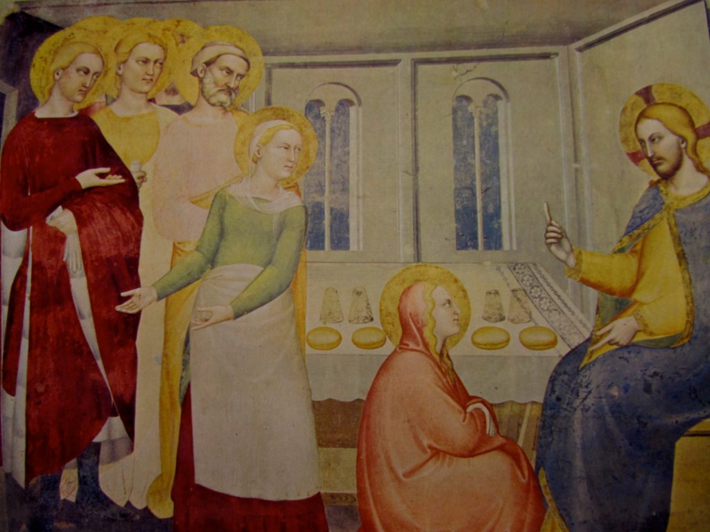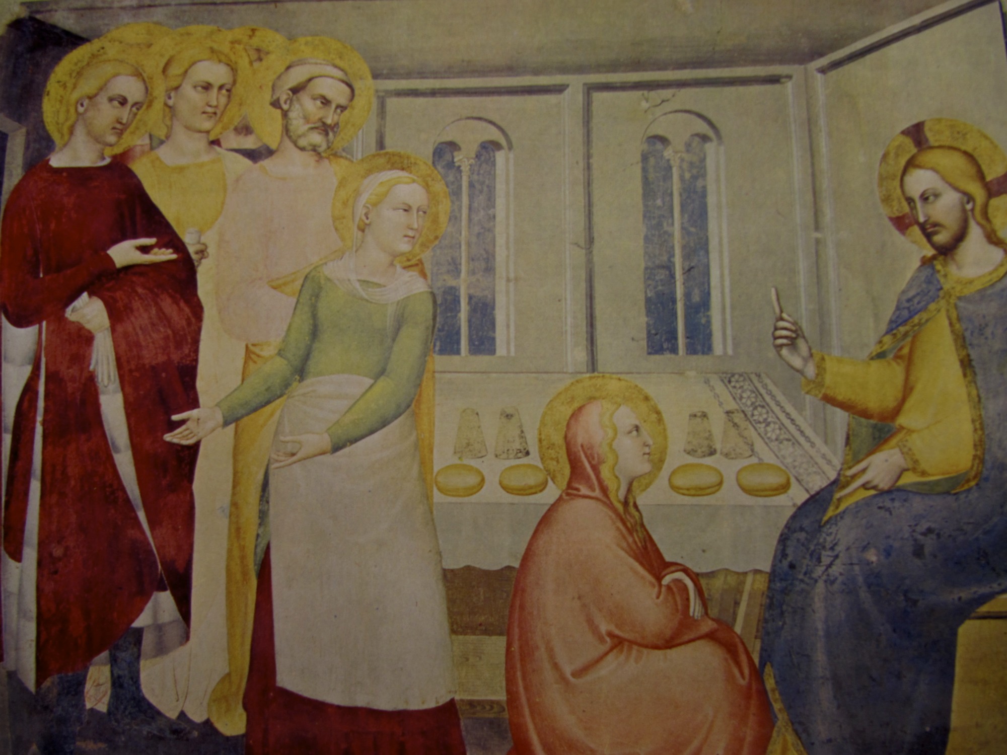We listen to scholars who study the bible. How about artists too? Here’s the 13th century Tuscan artist, Giovanni di Milano, looking into Luke’s gospel about Jesus with Martha and Mary at Bethany.